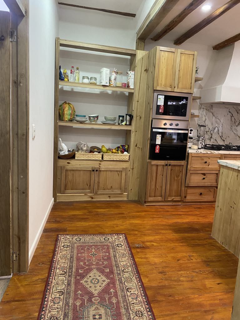 The kitchen, with a large eat-in area and dining table, has granite countertops and lots of wood cabinets and cupboards. A large laundry room that doubles as a mudroom, for taking off muddy shoes and hanging wet clothing and cold-weather jackets is found at the side of the kitchen. But, jackets may not be required, as Challuabamba is warmer and sunnier than Cuenca making it an ideal spot for those people wanting a little warmer climate.