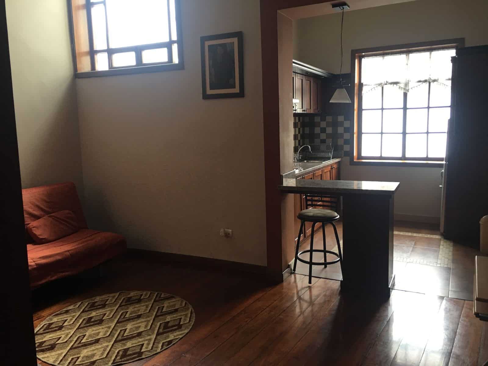 Fully furnished, 1BR with terrace, located in a restored colonial building in the heart of the city, Nearby you find supermarkets, Parque Calderon, restaurants, bus stops.